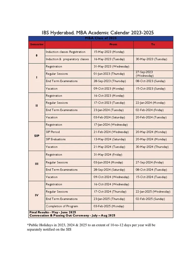 IBS Hyderabad, MBA Academic Calendar 20232025 PDF Academic Term